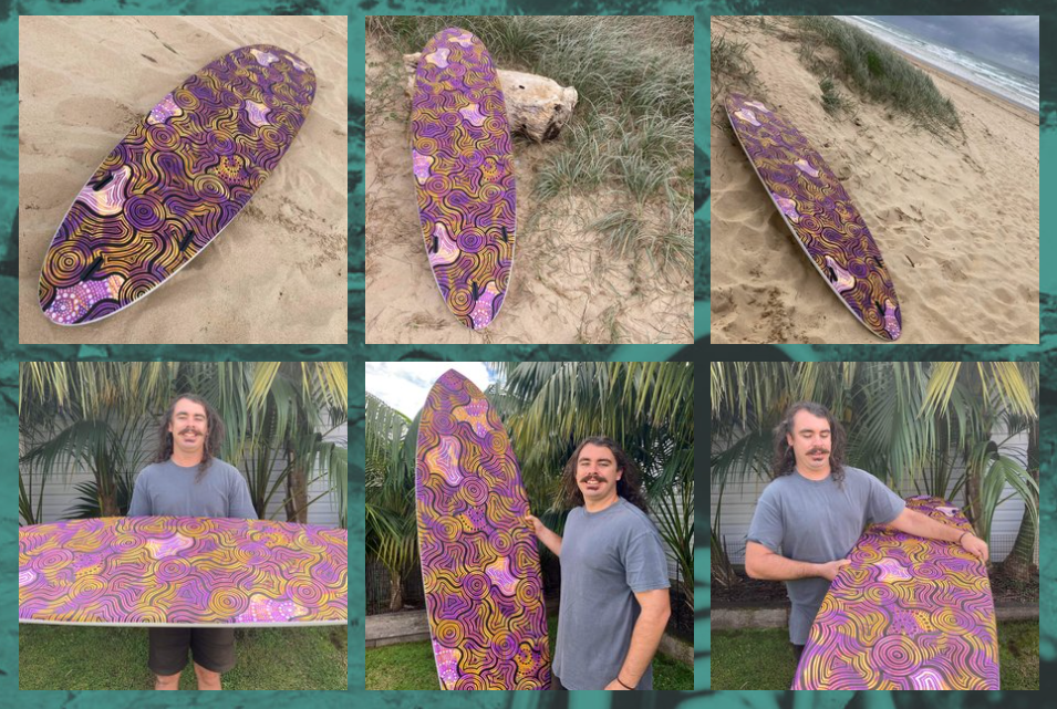 We couldn’t write this blog without mentioning Zach Bennet-Brook from Saltwater Dreamtime. Zach is an Indigenous man of Torres Strait Islander heritage & an award winning artist. Born & growing up in Dharawal Country, Zach has always been surrounded by the water & involved in water-based activities.